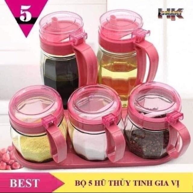 Bộ gia vị thuỷ tinh 5 món -Làm từ chất liệu thuỷ tinh vừa sạch sẽ, an toàn vệ sinh lại tránh nóng, tránh bẩn khi sử dụng gần bếp có nhiệt độ cao. -Dung tích: hũ nhỏ 350ml, hũ to 620ml...
