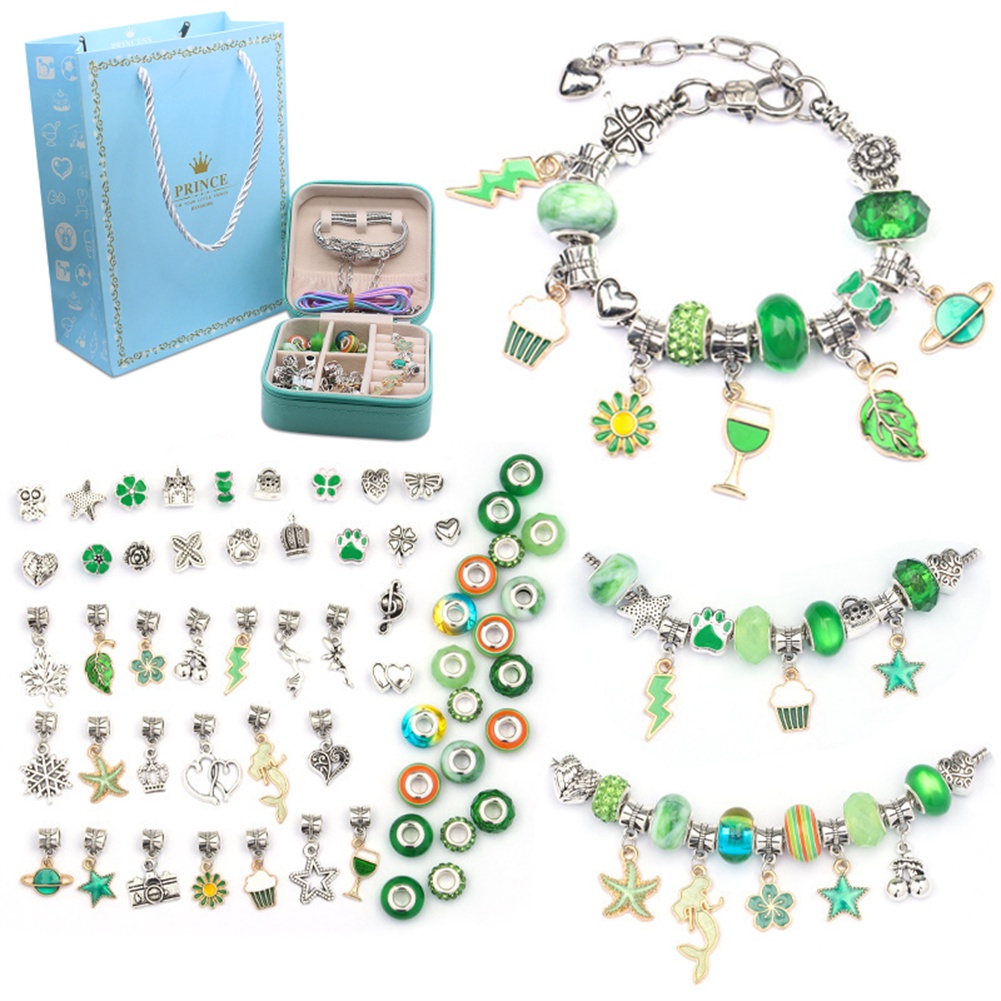 Mô tả: Chất liệu: Đồng, hợp kim kẽm, nhựa Kích thước hộp trang sức: 10 * 10 * 5cm Chiều dài vòng đeo tay: 16cm + 5cm Kích thước túi giấy: 15 * 20 * 7,5cm Kích thước vòng cổ: 45cm Gói hàng bao gồm: 20 × Hạt màu 20 × Hạt lỗ lớn 20 × Mặt dây chuyền hợp kim 3 × Dây chuyền