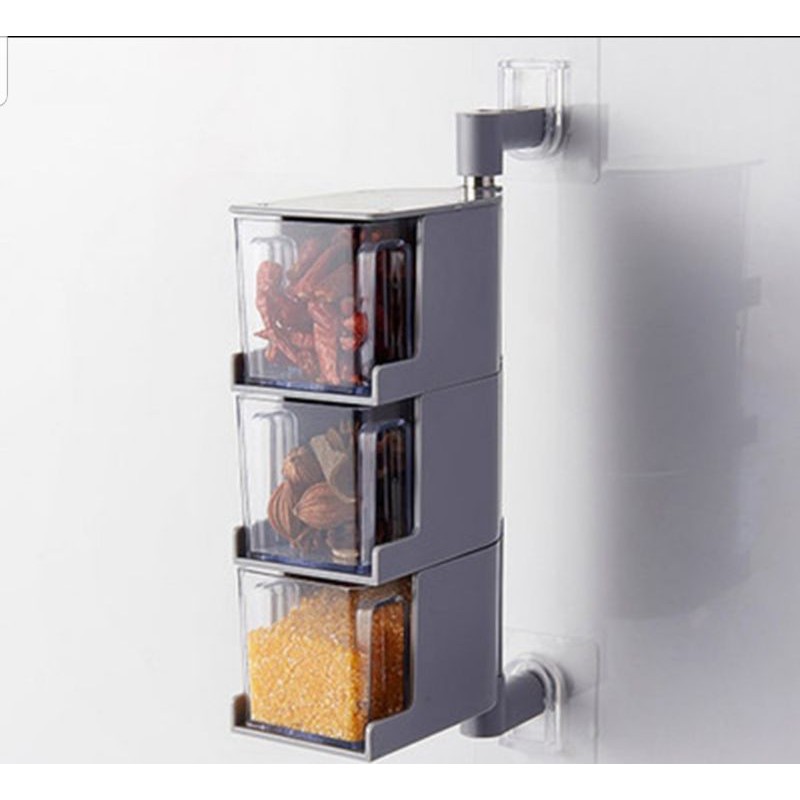 Bộ Hộp Đựng Gia Vị 3 Ngăn Dán Gắn Tường Tiện Lợi