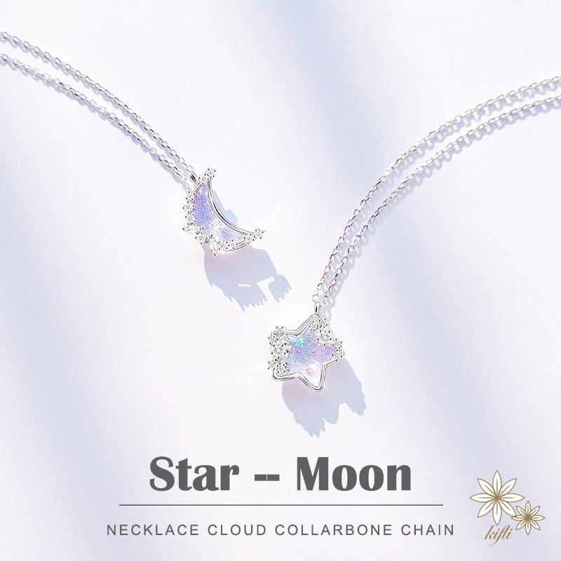 Bộ Hai Vòng cổ Thép 18k Mặt Trăng Ngôi Sao Đính Đá Zircon Đổi Màu Chất Lượng Cao