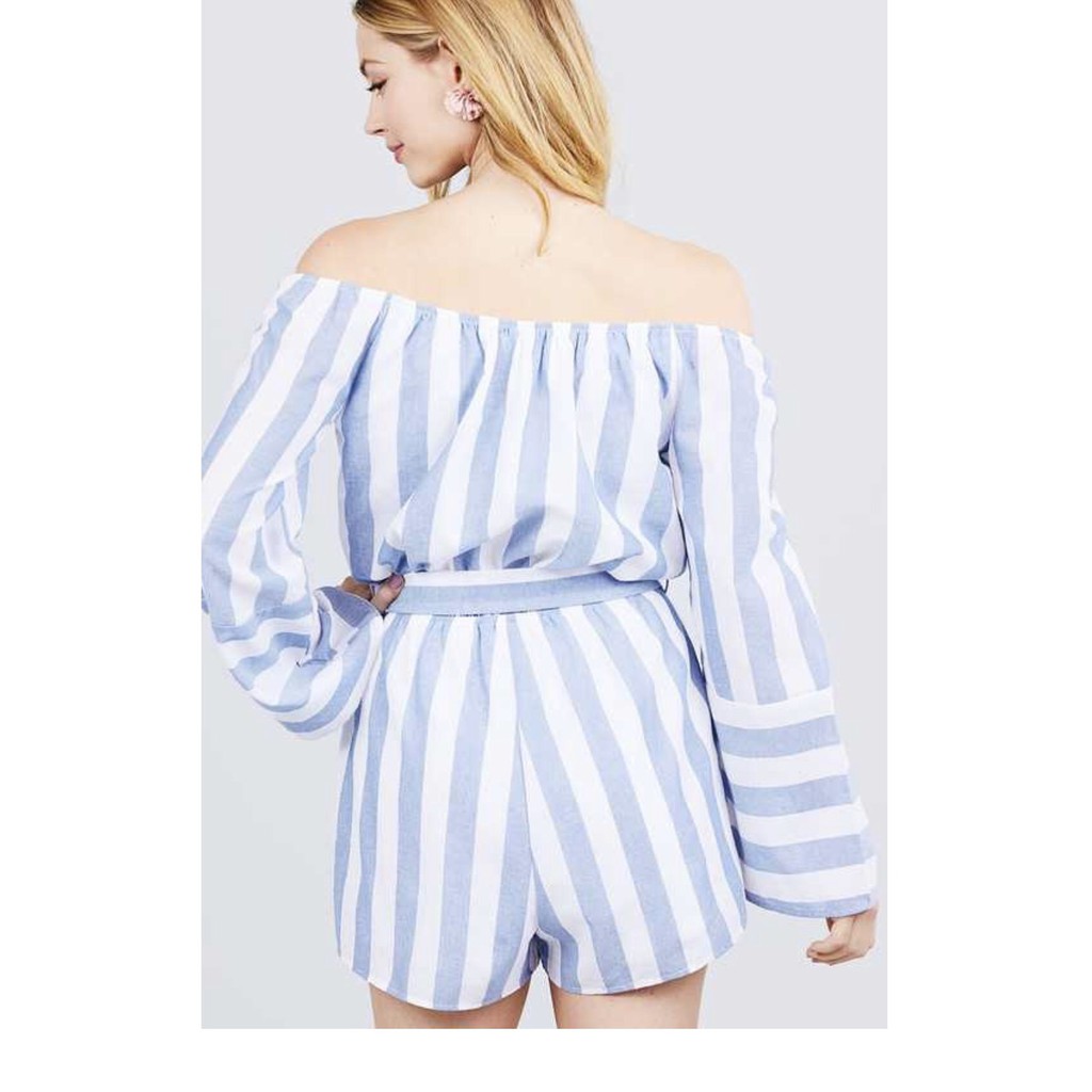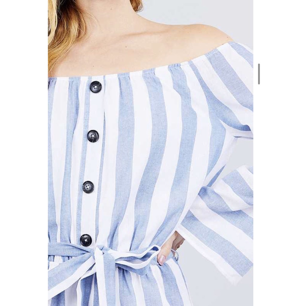 Bộ Jumpsuit trễ vai Chất linen cực mát Bên trong có lớp lót Size S: dưới 50kg Size M: dưới 55kg Size L: dưới 60kg màu sắc: sọc xanh, sọc xám, sọc hồng