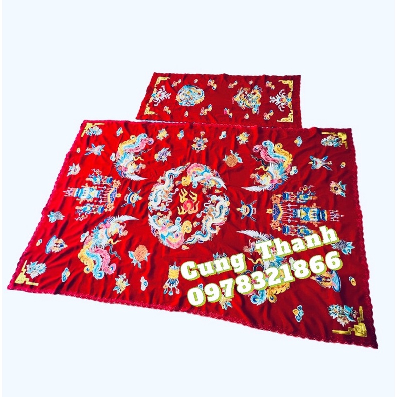 Khăn phủ diện vải gấm thêu tay cao cấp, bộ khăn hầu đồng gồm cả khăn phủ và khăn tấu, phụ kiện hầu giá Thánh