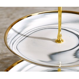 Bộ khay đựng mức, bánh kẹo trái cây màu loang hồng và xám viền vàng gốm sứ