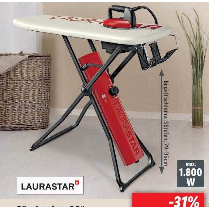 Bộ là Laurastar Go, tích hợp bàn là hơi và cầu là Thông số kỹ thuật của bàn là hơi - Công suất thiết bị: 1.800 watt - Áp suất: 3,5 bar - Bình chứa dung tích: 0,8 L - Cầu là với 3 cài đặt chiều cao - Tự động tắt thiết bị sau 10 phút ở trạng thái không hoạt động, tiết