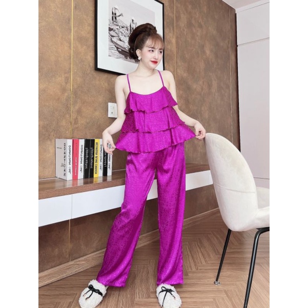 Đồ Bộ Nữ Mặc Nhà Quần Short + Áo 2 Dây Phối Tầng Lụa Latin_Ngân Boutique Đồ Ngủ Pijama