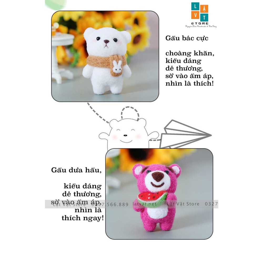 Bộ len chọc Gấu Họ Hàng đơn giản có video hướng dẫn - needle felting bear -món quà thủ công ý nghĩa