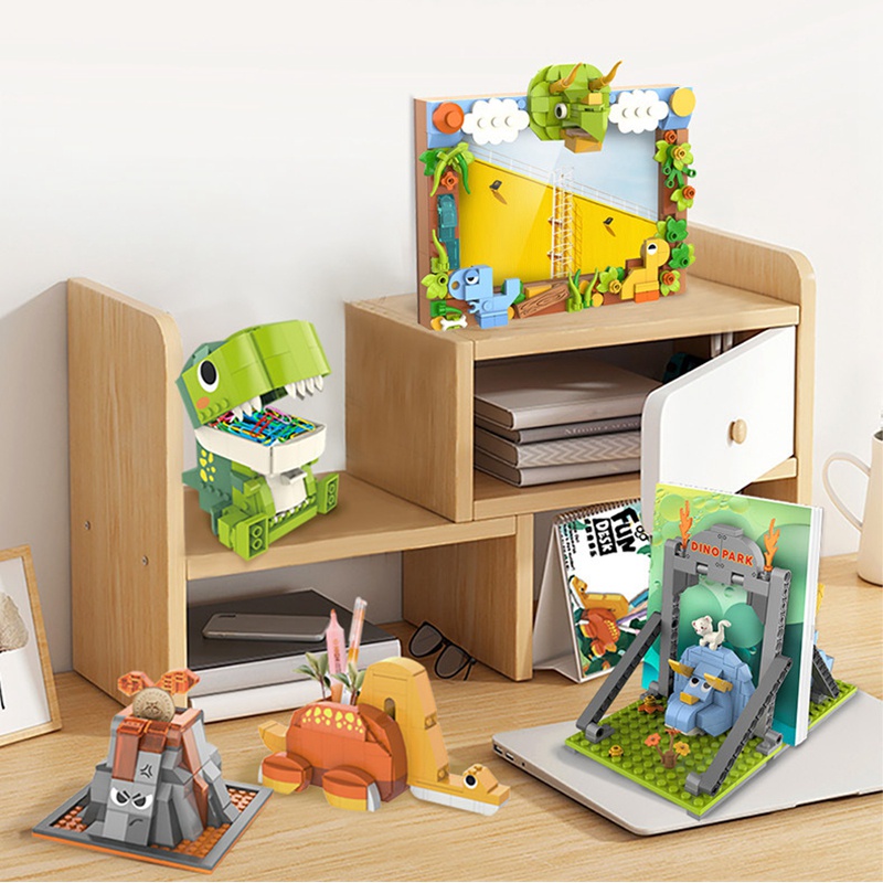 Bộ mô hình lắp ráp khủng long t-rex SLUBAN đựng bút và khung ảnh kèm hộp đựng