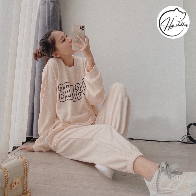 Sét nỉ tăm nữ áo dài tay bo gấu kèm quần shord hoặc quần dài có túi, bộ thu đông dài tay