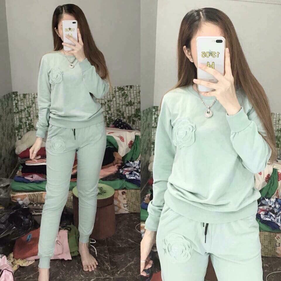 BỘ NỈ THU ĐÔNG HOA TRÀ CHẤT DA CÁ SIÊU XINH THỜI TRANG HÀN QUỐC.