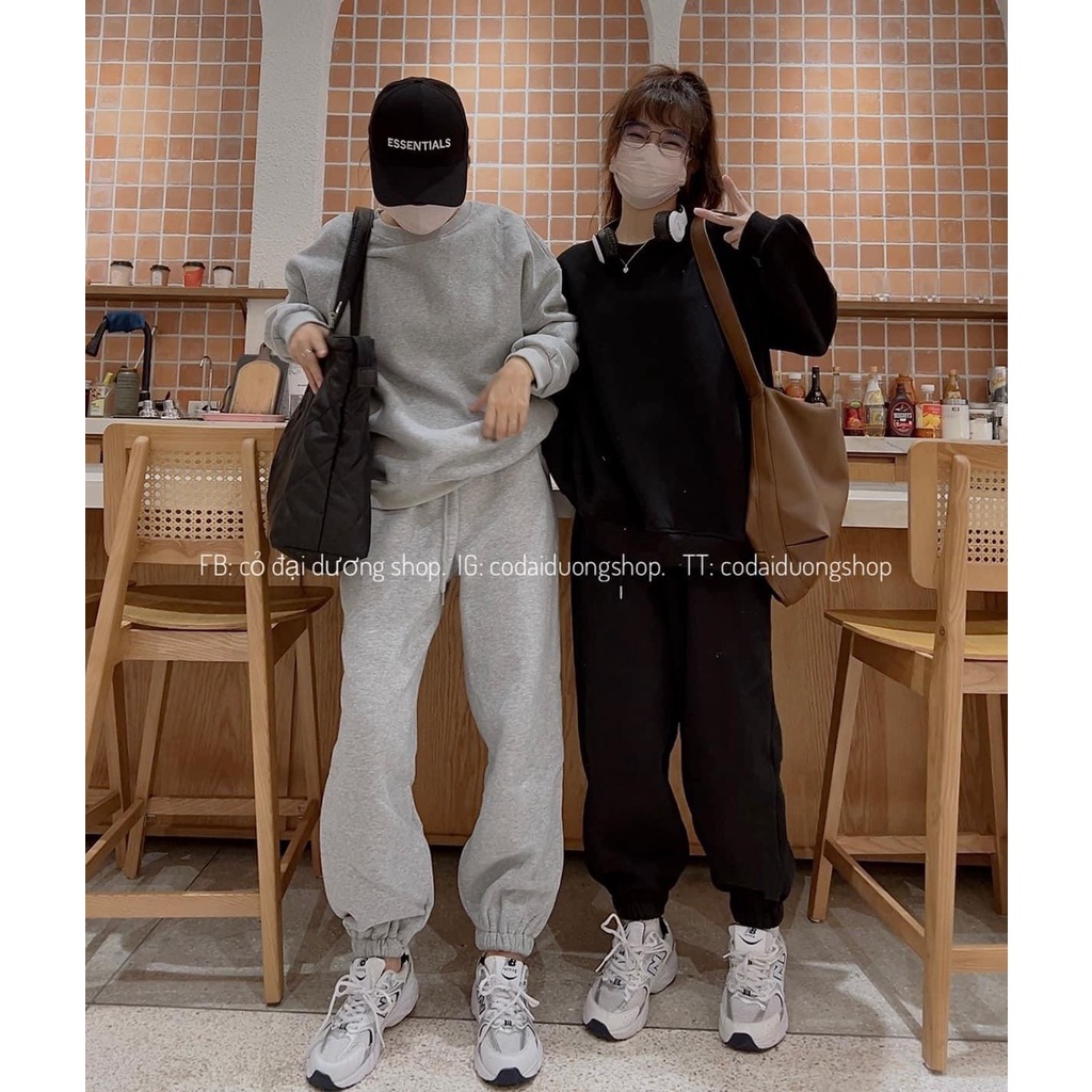 Bộ nỉ trơn cổ tròn - Bộ oversize mùa đông đơn giản, basic hàn quốc