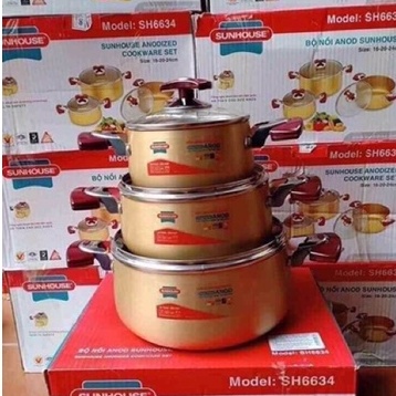 Bộ nồi Anod Sunhouse SH6634 chất liệu nhôm dùng bếp gas bếp hồng ngoại Uy tín đã được đảm bảo qua hàng vạn đơn hàng trên khắp cả nước Cam kết hàng chính hãng loại 1 - Bảo hành 12 tháng - Lỗi 1 đổi 1 (Freeship đổi trả toàn quốc) Shop chỉ bán hàng loại 1 nên quý khách