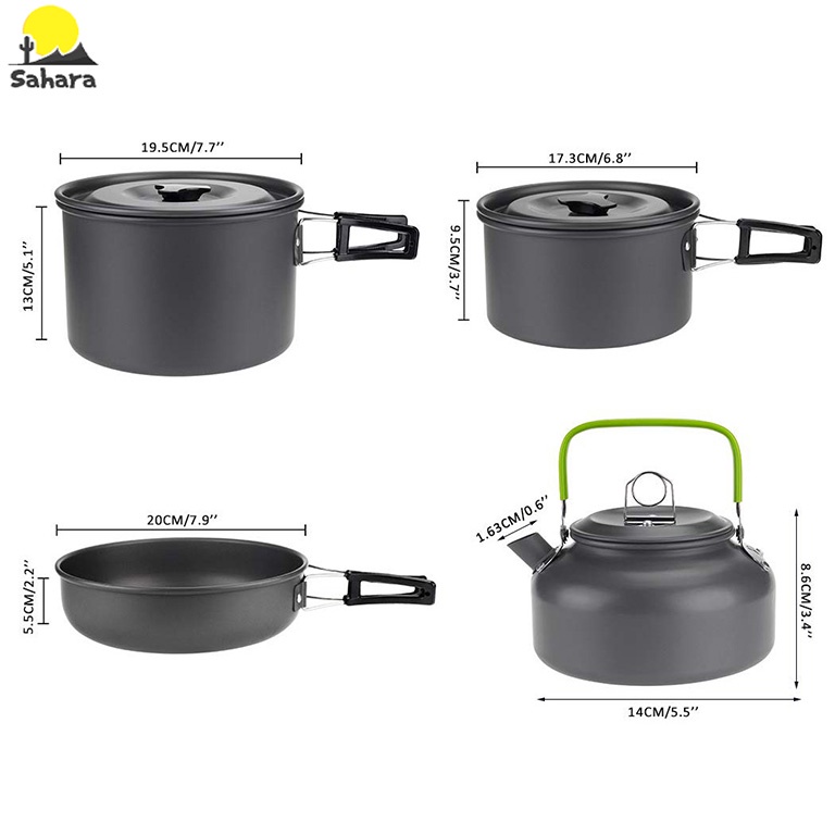 Bộ nồi chảo cốc hiệu CAMEL 8 món, dã ngoại du lịch cắm trại gọn nhẹ - Bộ nồi du lịch