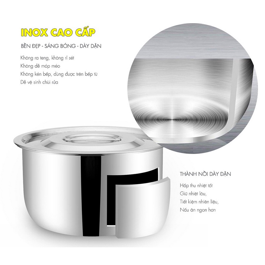 ♻️ BỘ NỒI 3 món MISU LOUIS - Chất liệu inox cao cấp giúp cho bộ nồi MISU LOUIS - Sáng bóng, dễ dàng lau chùi, vệ sinh. Kiểu dáng của bộ nồi sang trọng, tạo nên sự hiện đại cho căn bếp của bạn. Nắp kính siêu bền, chịu lực tốt và trong suốt, giúp bạn thuận tiện hơn khi cần quan sát thực phẩm trong khi đun nấu. - Bộ nồi có cấu tạo đáy 3 lớp dày dặn, tỏa nhiệt đều và giữ nhiệt tốt nên rất tiết kiệm nhiên liệu cũng như thời gian nấu nướng. - Đẳng cấp làm lên Thương hiệu sản phẩm 👉🏿Bộ nồi inox misu thích hợp với mọi loại bếp. 👉🏾Phần đáy nồi được cấu tạo gồm 3 lớp, trong đó, Lớp ngoài cùng inox nhiễm từ 18/0, có khả năng kháng xước, sáng bóng, có từ tính nên sẽ bắt từ và chuyển thành nhiệt năng. + Lớp giữa: Thường là nhôm hoặc đồng nguyên chất, lớp giữa có đặc tính là vật liệu hấp thu nhiệt và dẫn nhiệt cực tốt - sử dụng trên mọi Loại bếp ========== 😊Bộ nồi 3 chiếc chất liệu inox 430 cao cấp, an toàn cho sức khỏe, bắt nhiệt nhanh, tiết kiệm thời gian đun nấu, sử dụng được trên mọi loại bếp, kể cả bếp từ.