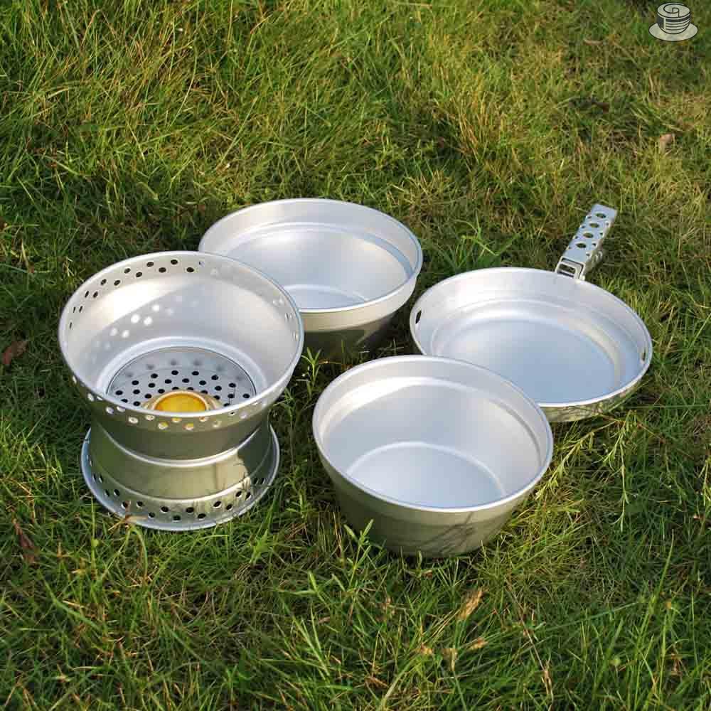 Bộ nồi nấu ăn kèm giá đỡ cầm tay tiện dụng cho hoạt động ngoài trời