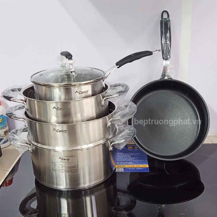 Bộ Nồi Xửng Chảo Inox cao cấp Canzy CZ 899 NEW ✅ 5 món chuyên dụng cho bếp từ