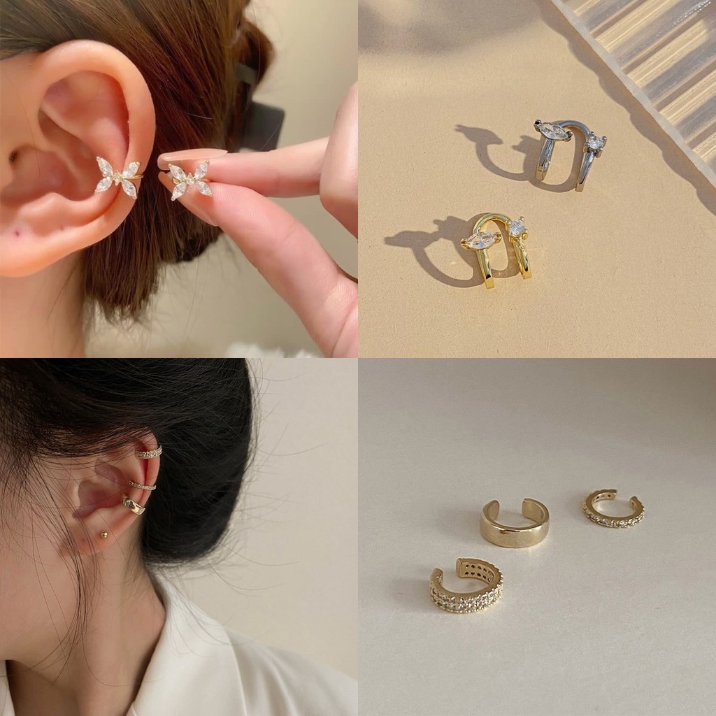 Bộ Ba Món Khuyên Tai Kẹp Vành Tai Hình Bướm Đính Đá Thời Trang Hàn Quốc Dành Cho Nữ Sinh