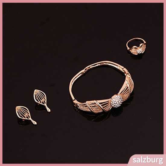 Bộ nữ trang vòng cổ bông tai nhẫn mạ vàng đính đá ngọt ngào