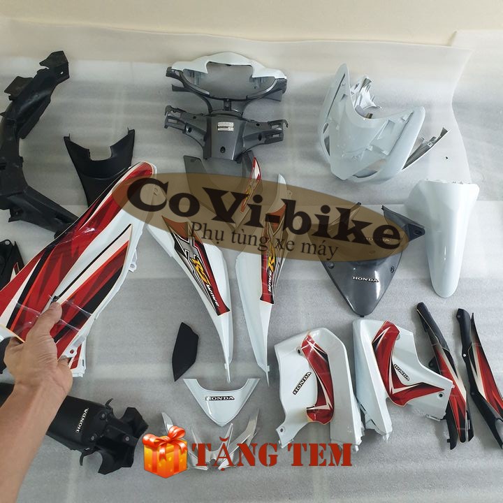 Bộ vỏ nhựa xe wave RSX100 đời 2008 - 2009 - Dàn áo Wave RSX 100 màu Đỏ - nhựa trắng ABS LOẠI 1