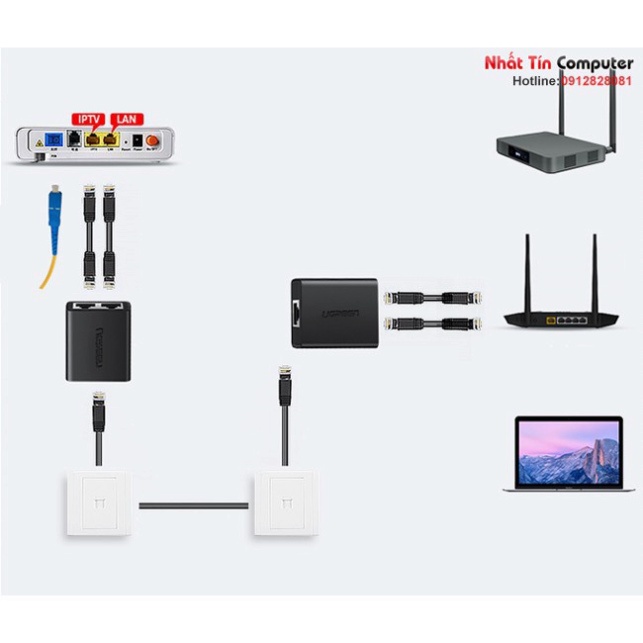 Bộ phân luồng tín hiệu IPTV và LAN RJ45 2 vào 1 chính hãng Ugreen 50923 cao cấp - Phân Phối Chính Hãng