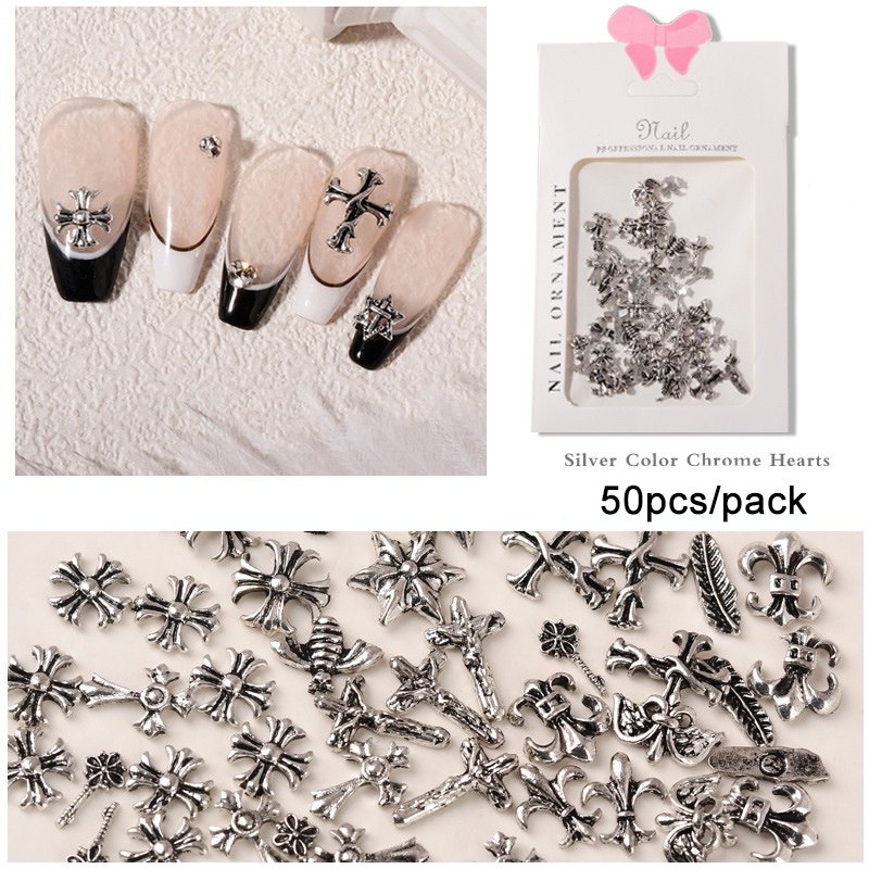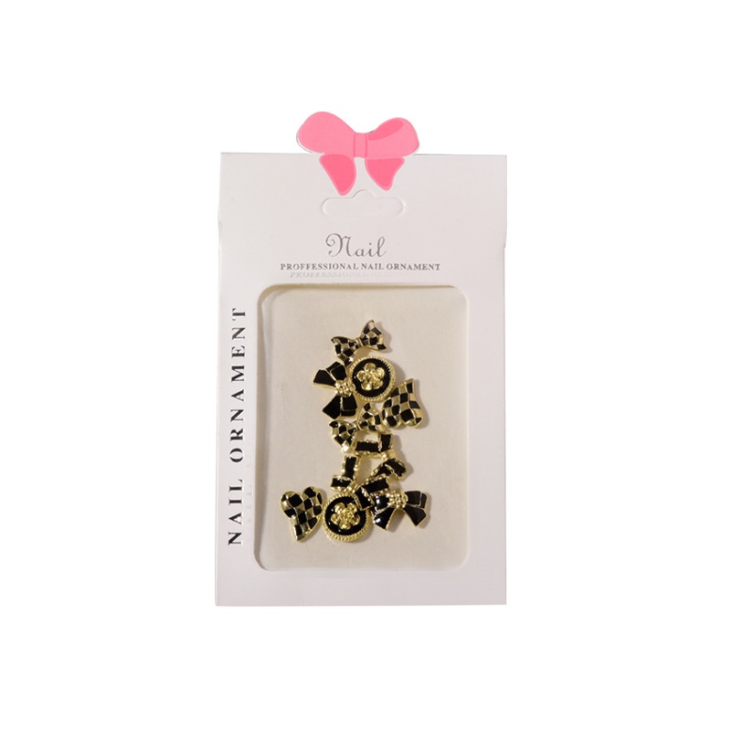 Bộ phụ kiện trang trí móng tay ROU BAO 3D DIY hình nơ đính ngọc trai kim loại phong cách punk cổ điển