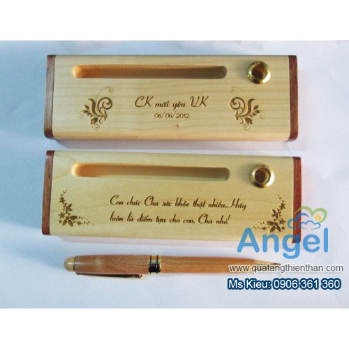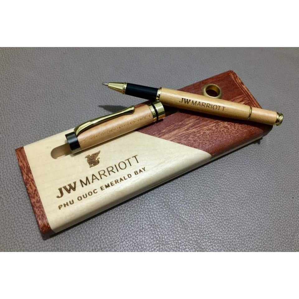 Bộ quà tặng bút gỗ cao cấp khắc nội dung logo hoặc tên theo yêu cầu khách hàng