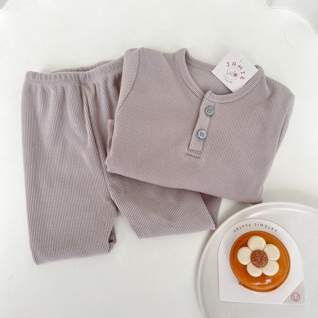 Bộ quần áo dài tay thun tăm nhung cổ bổ trụ 2 cúc chất dày dặn mùa thu đông cho bé trai và bé gái