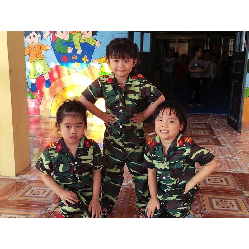 Quần áo trẻ em bộ đội công an rằn ri thời trang lính nhí cho bé mầm non tiểu học