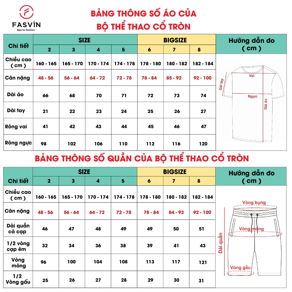 ⛹️ 𝑻𝑯𝑶̂𝑵𝑮 𝑻𝑰𝑵 𝑪𝑯𝑰 𝑻𝑰𝑬̂́𝑻 - Quần áo thể thao do Fasvin tự thiết kế - sản xuất - bán hàng nên có giá cả cạnh tranh và bảo hành chính hãng tin cậy - Tên sản phẩm: Bộ quần áo thể thao Big Size cộc tay nam Fasvin AT20161.SG - Bộ thể thao Fasvin được làm từ vải thể thao cao cấp, co giãn 4 chiều, nhẹ, mềm, mát, không bai không xù, giặt máy thoải mái, không phai màu. - Chất liệu: 95% Polyester + 5% Spandex - Phom dáng đẹp vừa vặn với vóc dáng người Việt. - Màu sắc căn bản hài hoà không lo lỗi mốt - Áo có thiết kế căn bản có cổ rất phù hợp cho các hoạt động thường ngày - Màu sắc: Trắng - Ghi - Xanh - Đen 📐 𝑩𝑨̉𝑵𝑮 𝑺𝑰𝒁𝑬 𝑺𝑨̉𝑵 𝑷𝑯𝑨̂̉𝑴 - Size 6 : Cân nặng 78 - 84kg, Chiều cao 178cm - 180cm - Size 7 : Cân nặng 85 - 92kg, Chiều cao 180cm - 182cm. - Size 8 : Cân nặng 92 - 100kg, Chiều cao 182cm - 184cm. 🔻 𝑯𝑼̛𝑶̛́𝑵𝑮 𝑫𝑨̂̃𝑵 𝑩𝑨̉𝑶 𝑸𝑼𝑨̉𝑵 - Không nên phơi trang phục với ánh nắng trực tiếp - Nên sử dụng bàn là/ủi bằng hơi nước - Sau khi chơi thể thao về, bạn nên giặt ngay trang phục, nếu để lâu quần áo sẽ có mùi hôi và ẩm mốc ️🛒 𝑪𝑯𝑰́𝑵𝑯 𝑺𝑨́𝑪𝑯 𝑲𝑬̀𝑴 𝑻𝑯𝑬𝑶 - Tất cả hình ảnh/video đều do Fasvin tự chụp/quay. Mọi hành vi sao chép đều cần phải có sự đồng ý của Fasvin. - Fasvin xin cam kết đổi trả hàng trong 07 ngày theo đúng chính sách của Shopee. - Bảo hành sản phẩm trong vòng 06 tháng nếu có lỗi do nhà sản xuất. - Theo quy định của shopee, Quý khách không được kiểm tra hàng khi nhận. Tuy nhiên Fasvin sẽ hỗ trợ đổi trả trong trường hợp sản phẩm không vừa. (Lưu ý: Sản phẩm phải còn nguyên tem mác và chưa qua sử dụng) 🤔 𝑮𝑶́𝑪 𝑻𝑼̛ 𝑽𝑨̂́𝑵 Để chọn kích cỡ phù hợp không đơn giản. Nếu số đo của bạn nằm giữa 2 kích cỡ bạn phải làm gì ? * Bạn thích mặc vừa vặn => Hãy chọn cỡ theo bảng size/ Bạn thích mặc thoải mái => Hãy chọn lên 1 size * Nếu chiều cao và cân nặng của bạn nằm ở 2 size khác nhau. Bạn có thể tăng/giảm 1 size (ưu tiên chiều cao hoặc cân nặng) cho phù hợp * Bật mí: Người mẫu cao 171 cm, nặng 64 kg mặc size 3. ⚠️ Nếu bạn còn thắc mắc hãy inbox cho shop để được tư vấn thêm nhé! ------------------------------------ #fasvin #aothunnam #aonam #aothethaonam #aonamthethao #aothungiare #aothunnamgiare #aocotron #quanaothethaonam #quanaothethaonamgiare #fasvinhanoi #fasvinvietnam #quanduithethaonam