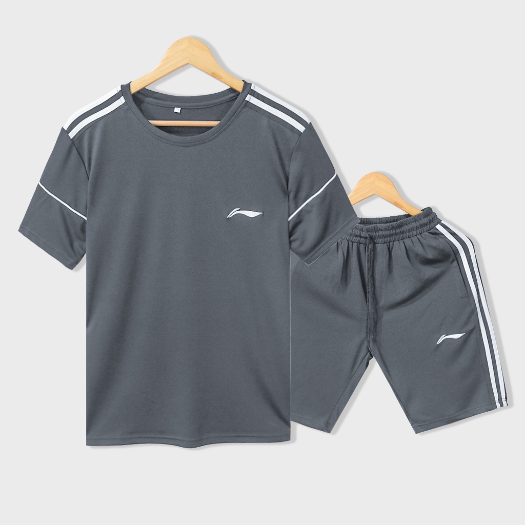Bộ Quần Áo Thể Thao Nam Mùa Hè Cổ Tròn Viền Vai, Chất Cotton Cá Sấu CVC, Mặc Mát Mẻ, Thanh Lịch BMF