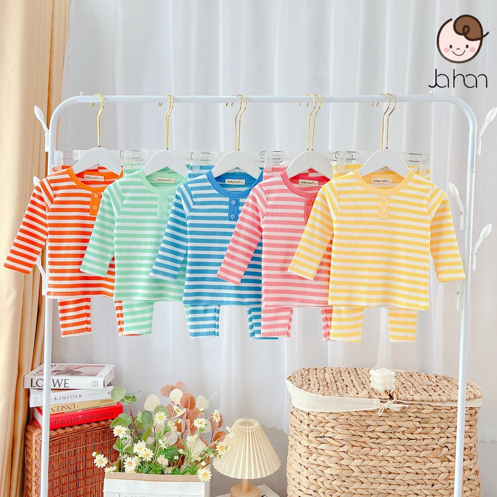 Bộ len gân MINKY MOM cổ 3cm cho mua thu đông, Bộ dài tay có màu bé trai, bé gái 8-20kg