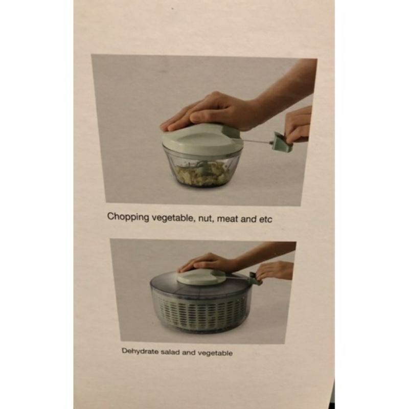 Bộ rổ quay rau và dụng cụ băm nhuyễn thực phẩm Lock&Lock CKS319GRN. *Kích thước: Đường kính 26cm x chiều cao 19cm. * Bộ gồm: ✔ 1 rổ quay rau màu xanh ✔ 1 dụng cụ băm nhỏ thực phẩm min * Chất liệu sản phẩm. - Lưỡi dao của dụng cụ băm nhỏ thực phẩm bằng thép không gỉ. - Trục xoay của băm nhỏ thực phẩm bằng nhựa HDPE - Thân chứa đựng của dụng cụ băm nhỏ thực phẩm bằng nhựa PS - Nắp của dụng cụ băm nhỏ là nhựa PP - Phần rổ bên trong, nắp rổ cưa bộ phận quay rau nhựa PS - Rổ bên ngoài của phần nhựa quay rau là nhựa PP * Bộ rổ quay rau được thiết kế chuyên dụng dùng để chế biến salad,kèm dụng cụ băm nhỏ các loại như rau, hạt, thịt.... - Không nên tác dụng lực quá mức cần thiết - Trong quá trình thao tác nếu thực phẩm mặc vào lưỡi dao, hãy vui lòng lắc nhẹ hộp chứa để tạo khoảng trống cho lưỡi dao xoay dễ dàng. Vì lưỡi dao khá sắc nét nên hãy cẩn thận sử dụng và khi vệ sinh sản phẩm. * Công dụng: 👉Quay và làm khô rau, đặc biệt thích hợp để quay rau sống, giúp bạn quay rau cho ráo nước. 👉Ngoài ra, có thể dùng để đựng, ngâm các loại rau, củ, quả, thực phẩm. 👉Rổ được làm từ chất liệu nhựa bền, đẹp, đảm bảo an toàn vệ sinh thực phẩm. 👉Kích thước của rổ lớn để người dùng có thể vừa rửa, quay vừa ngâm được rau trong rổ, rất thích hợp cho món salad hoặc mỳ ống, các món ăn tráng miệng. 👉Sản phẩm có thiết kế tay kéo ở trên nắp, khi nào cần quay rau, chỉ cần kéo nhẹ tay kéo này, rổ quay rau sẽ thực hiện hoạt động quay. 👉Nắp rổ giúp việc lưu trữ rau trong tủ lạnh được tươi và lâu hơn. Lưu ý: - Không nên tác dụng lực quá mức cần thiết. - Trong quá trình thao tác nếu thực phẩm mặc vào lưỡi dao, hãy vui lòng lắc nhẹ hộp chứa để tạo khoảng trống cho lưỡi dao xoay dễ dàng. - Không để sp gần lửa - Không sử dụng sp trong lò vi sóng, lò nướng. - Đặt sp xa trẻ em