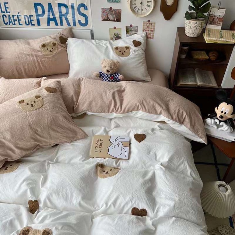 Bộ chăn ga gối cao cấp ETAMI cotton gấu lotso dâu cute miễn phí bo chun drap giường ga trải giường