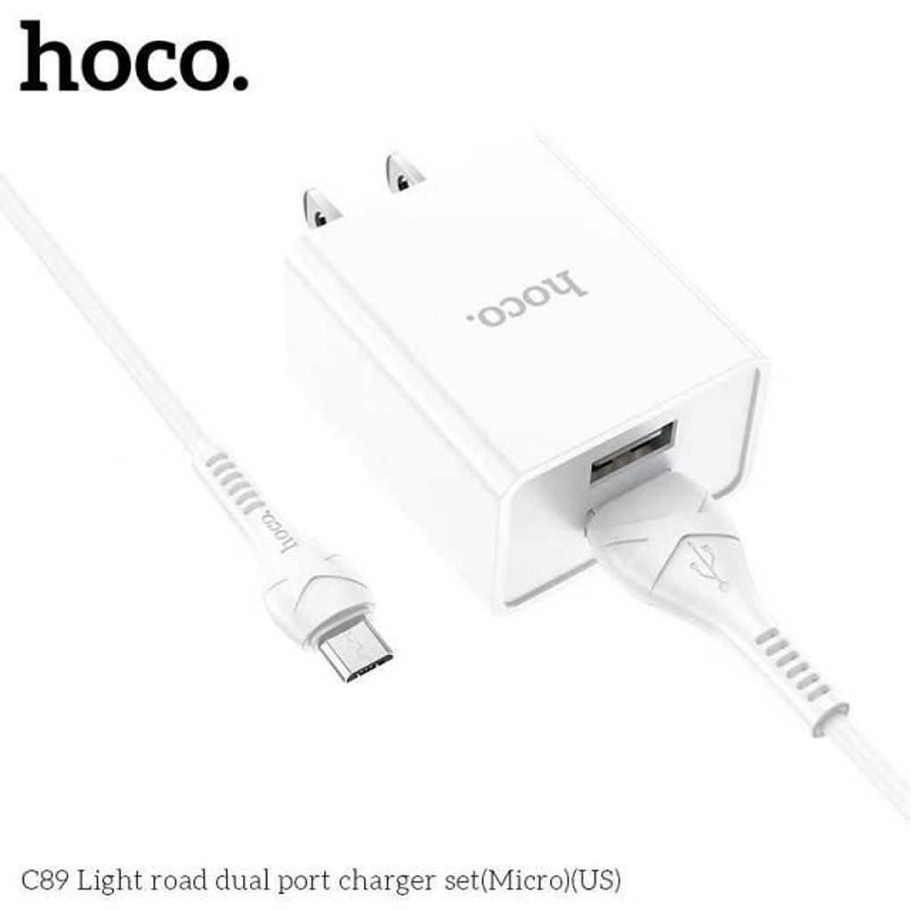 Bộ sạc Hoco C89 Micro USB 2 cổng USB, sạc nhanh 2.1A, tương thích với nhiều dòng Samsung/Oppo/Xiaomi..., chân cắm US