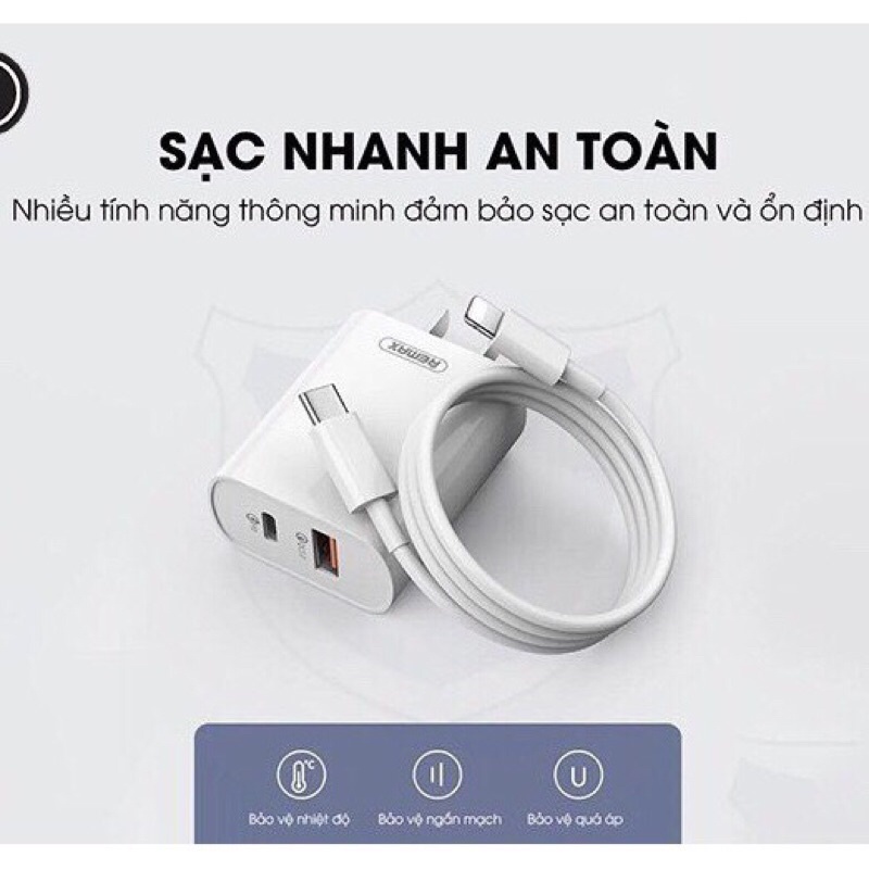 Bộ sạc nhanh Remax QC PD sở hữu công suất lên đến 18W, tích hợp công nghệ sạc nhanh PD QC 3.0 với hiệu suất sạc ổn định chắc chắn là món phụ kiện không thể thiếu của bất cứ tín đồ công nghệ nào. Giới thiệu sản phẩm: - Củ sạc gồm 2 cổng sạc: USB và Type C - Kèm cáp sạc 18W chuẩn TypeC to Light IP dài 100cm. - Cổng Type-C Out cung cấp dòng điện tối đa 18W (tối đa) với công nghệ sạc nhanh PD mới hiện nay. - Cổng USB cung cấp dòng điện tối đa 3A (tối đa) đi kèm với công nghệ QC3.0 - Thiết kế nhỏ gọn cùng chất liệu chất lượng cao. - Tự động nhận biết thiết bị cung cấp điện, điều chỉnh dòng sạc, sạc nhanh hơn và an toàn hơn - Bảo vệ quá dòng, quá tải, dưới điện áp và bảo vệ ngắn mạch - Hỗ trợ điện áp rộng 100V-240V, đáp ứng các tiêu chuẩn điện áp của hầu hết các quốc gia và khu vực trên thế giới, và có thể được sử dụng ở mọi nơi.