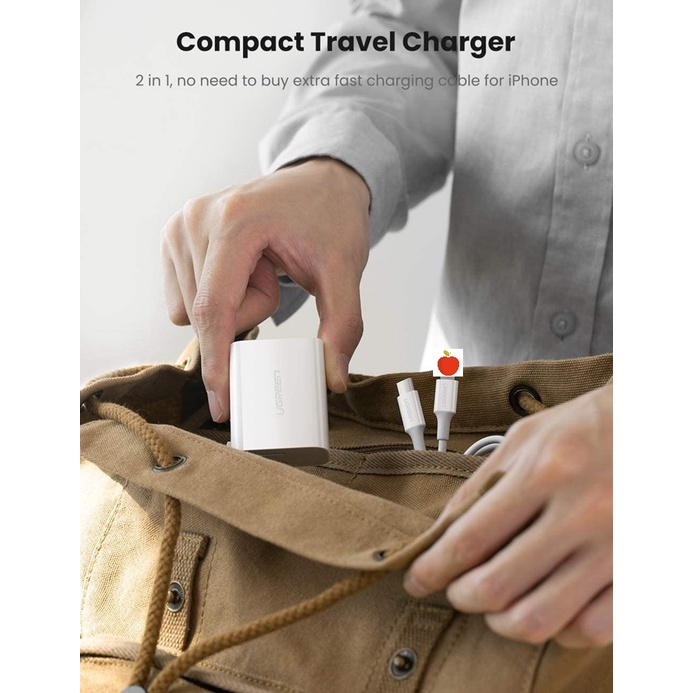 Bộ sạc nhanh Ugreen USB C 20W PD cho i/Phone - 70293