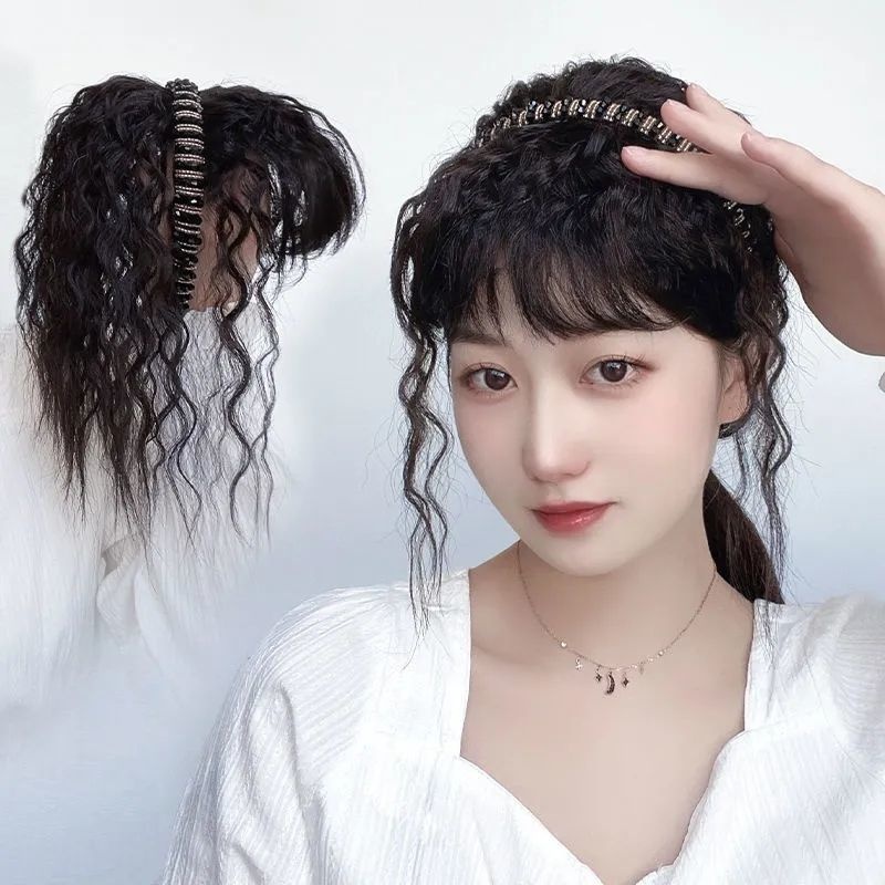 Bộ Tóc Giả 3D Bằng Lụa Màu Trắng Che Phủ Tóc Mái Ngang Tiện Lợi Dành Cho Nữ