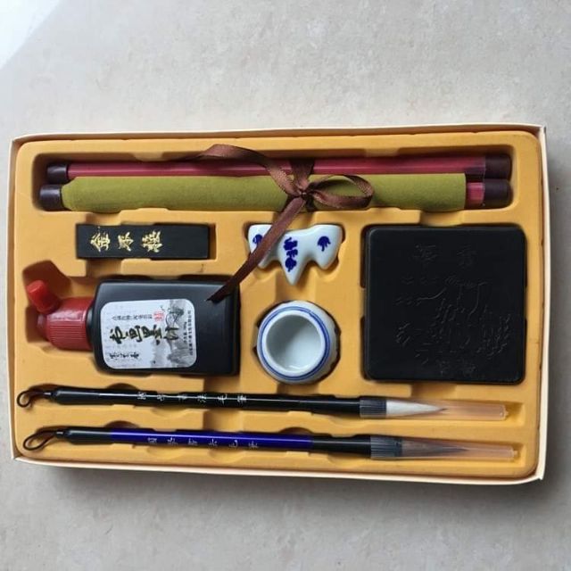 Văn phòng tứ bảo bộ bút lông thư pháp, mực tàu, nghiên mực luyện viết thư pháp
