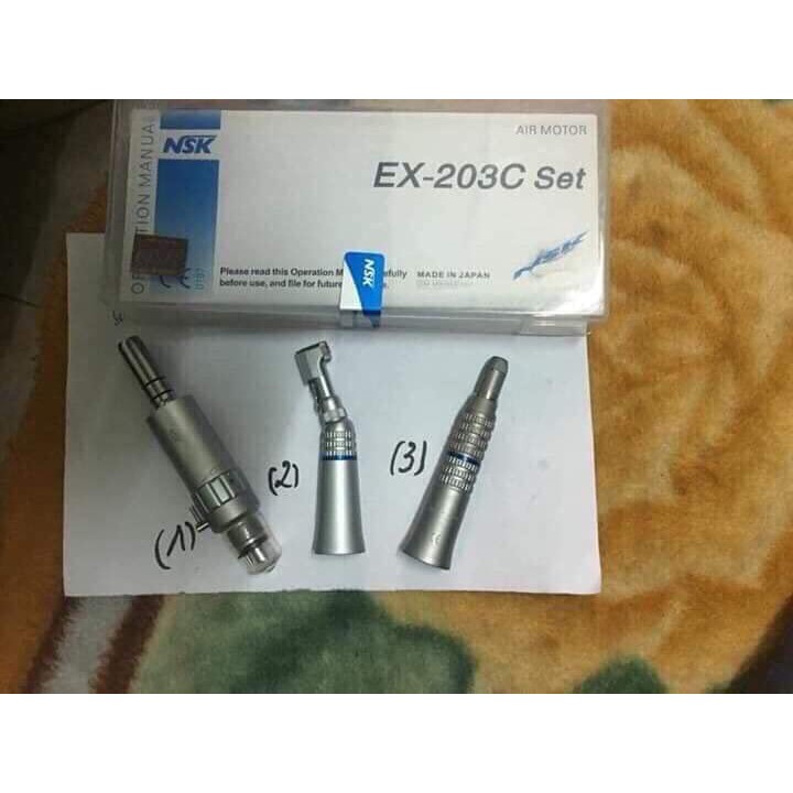 BỘ TAY KHOAN CHẬM 3 CHI TIẾT CỦA NSK - NHA KHOA. GỒM 3 CHI TIẾT: CỦ, ĐẦU THẲNG, ĐẦU CONG