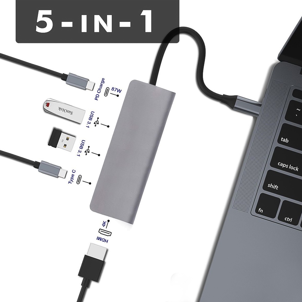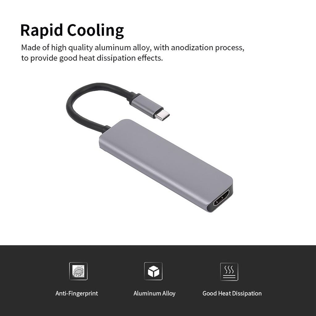 Bộ thiết bị Hub Cổng chia chuyển đổi đa năng USB Type-C 5 in 1 sang 5 Cổng HDMI 4K 60Hz/ USB 3.0/ Type-C/ PD -dc4825