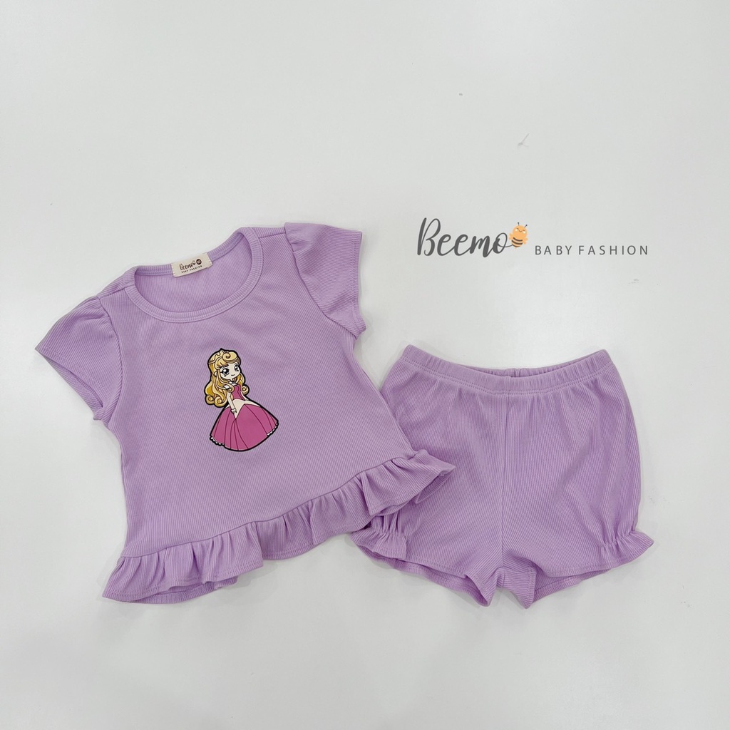 Bộ Thun Tăm Lạnh Bé Gái Beemo Bộ Mặc Nhà Bé Gái Quần Short Áo Ngắn Cộc Tay 8-23 KG
