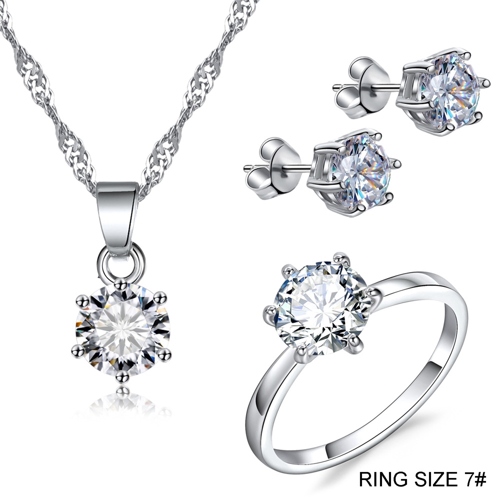 Bộ Trang Sức Mạ Bạc Đính Đá Nhân Tạo Thời Trang Dành Cho Nữ