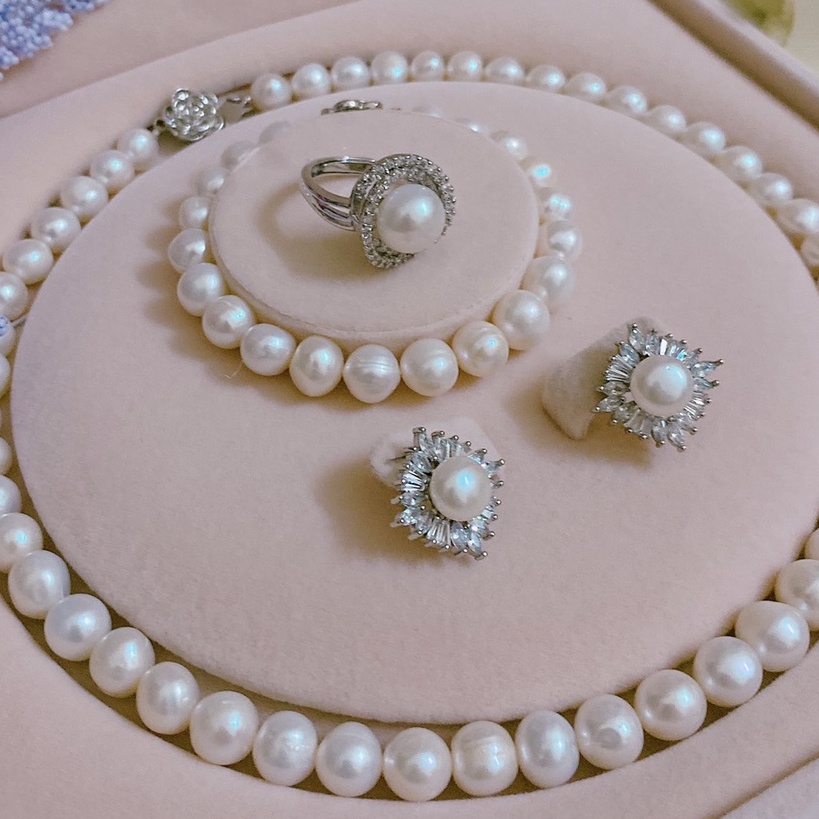 Bộ trang sức trai thật tự nhiên nuôi nước ngọt 10li trắng 4 món đã có hộp
