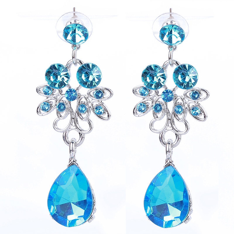 Thời gian giao hàng dự kiến cho sản phẩm này là từ 7-9 ngày Đặc điểm: Chất liệu: Hợp kim, hình giọt nước Màu sắc: Đỏ, Xanh hồ, Tím, Trắng, Xanh hoàng gia Kích thước: Vòng cổ dài khoảng 50cm, dây nối dài khoảng 11cm, kích thước bông tai khoảng 5 * 2cm, có thể có sai