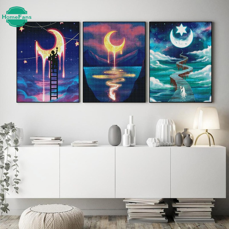 Bộ Tranh Đính Đá 5D Họa Tiết Phong Cảnh Độc Đáo DIY Dùng Trang Trí Nhà Cửa