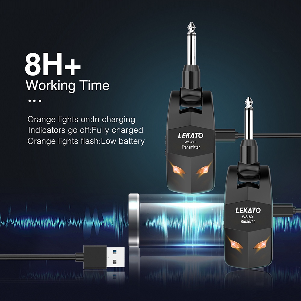 Bộ truyền nhận tín hiệu đàn guitar không dây LEKATO 2.4ghz có thể sạc được