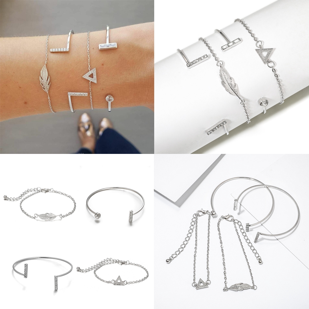 Bộ vòng tay kiểu mở thiết kế hình lá và mặt trăng có thể điều chỉnh kích thước