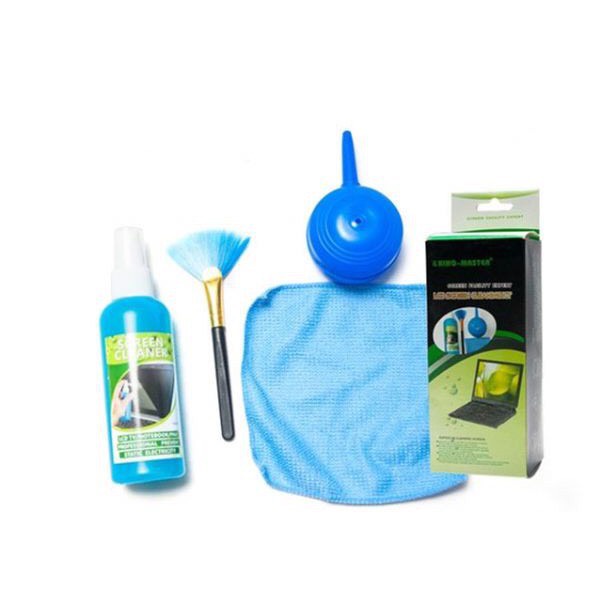 Bộ vệ sinh máy tính 4 món gồm dung dịch làm sạch, chổi quét bụi và khăn lau bụi sử dụng cho màn hình máy tính, tivi LCD,