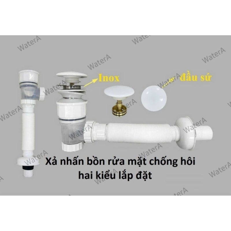 Bộ xả xi phông Lavabo đầu inox cao cấp cho chậu rửa mặt, bồn rửa bát