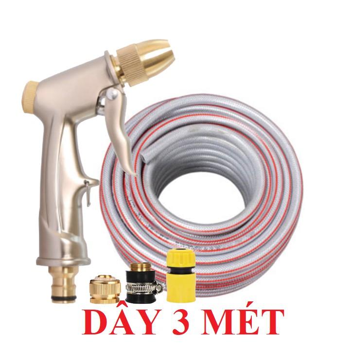 Bộ dây vòi xịt nước rửa xe, tưới cây . tăng áp 3 lần, loại 15m 206701-1 đầu đồng,cút đồng