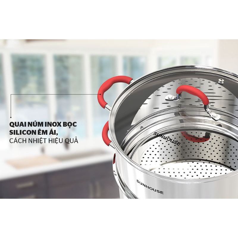 Bộ xửng hấp, nồi hấp kiêm nồi luộc gà 5 đáy Sunhouse size 24 và 28 hàng chính hãng giá tốt
